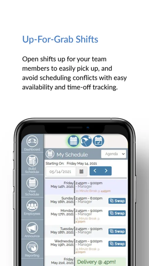 • Create open shifts for team members to pick up—great for extra hours, volunteers and events!