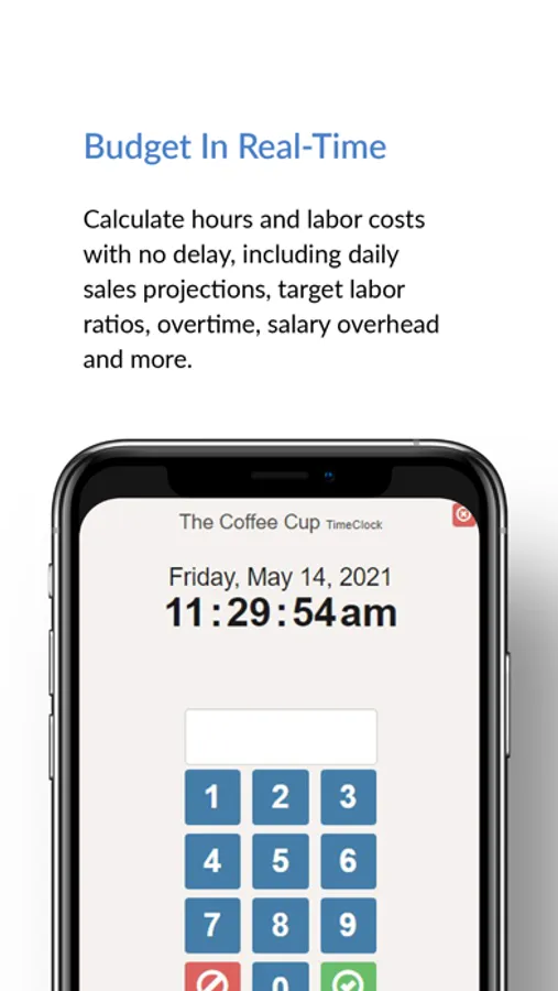 • Calculate hours and budgeting in real-time including weekly labor budgets, daily sales projections, target labor ratios, overtime, salary overhead, and more