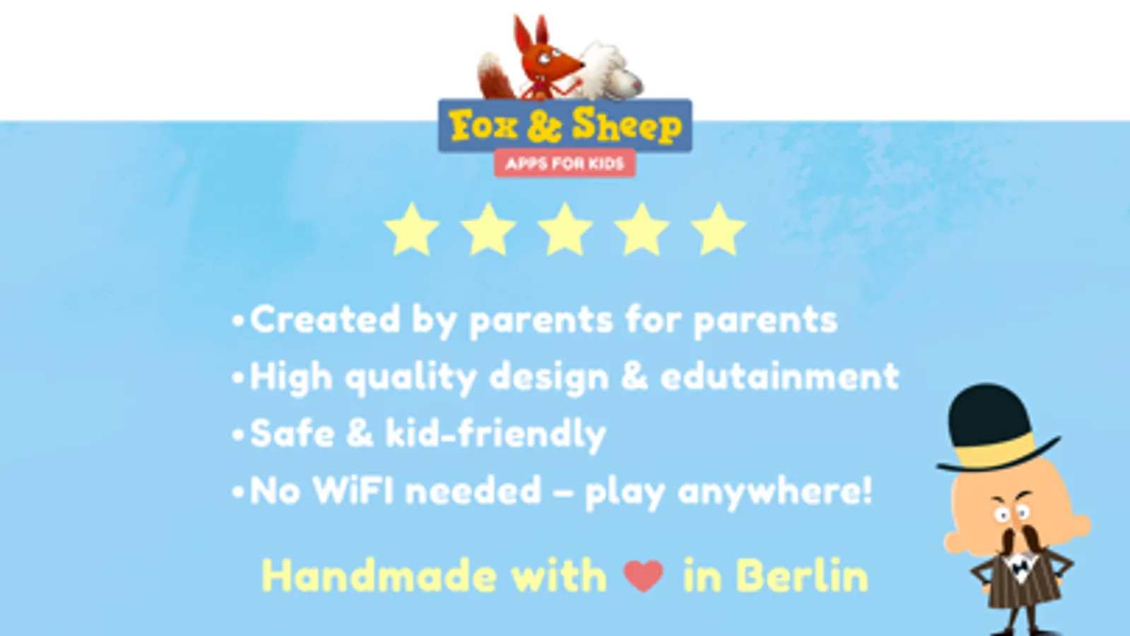 We are a Studio in Berlin and develop high quality apps for kids at the age of 2-8 years. We are parents ourselves and work passionately and with a lot of commitment on our products. We work with the best illustrators and animators around the world to create and present the best apps possible – to enrich the lives of our and your kids.