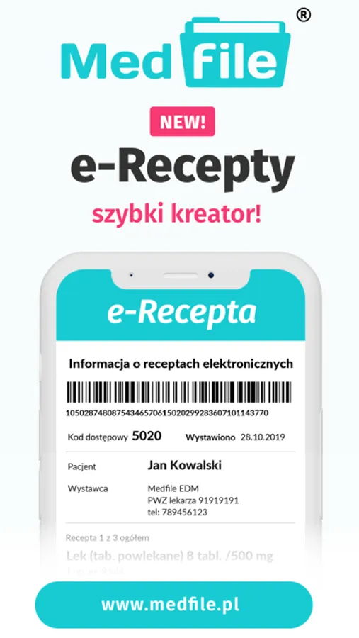 Program Medfile obsługuje pełną funkcjonalność e-Recepty w tym e-Recepty: