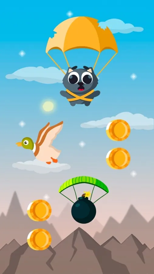 Choose your favourite pet or unicorn or sausage and fall down from skies!