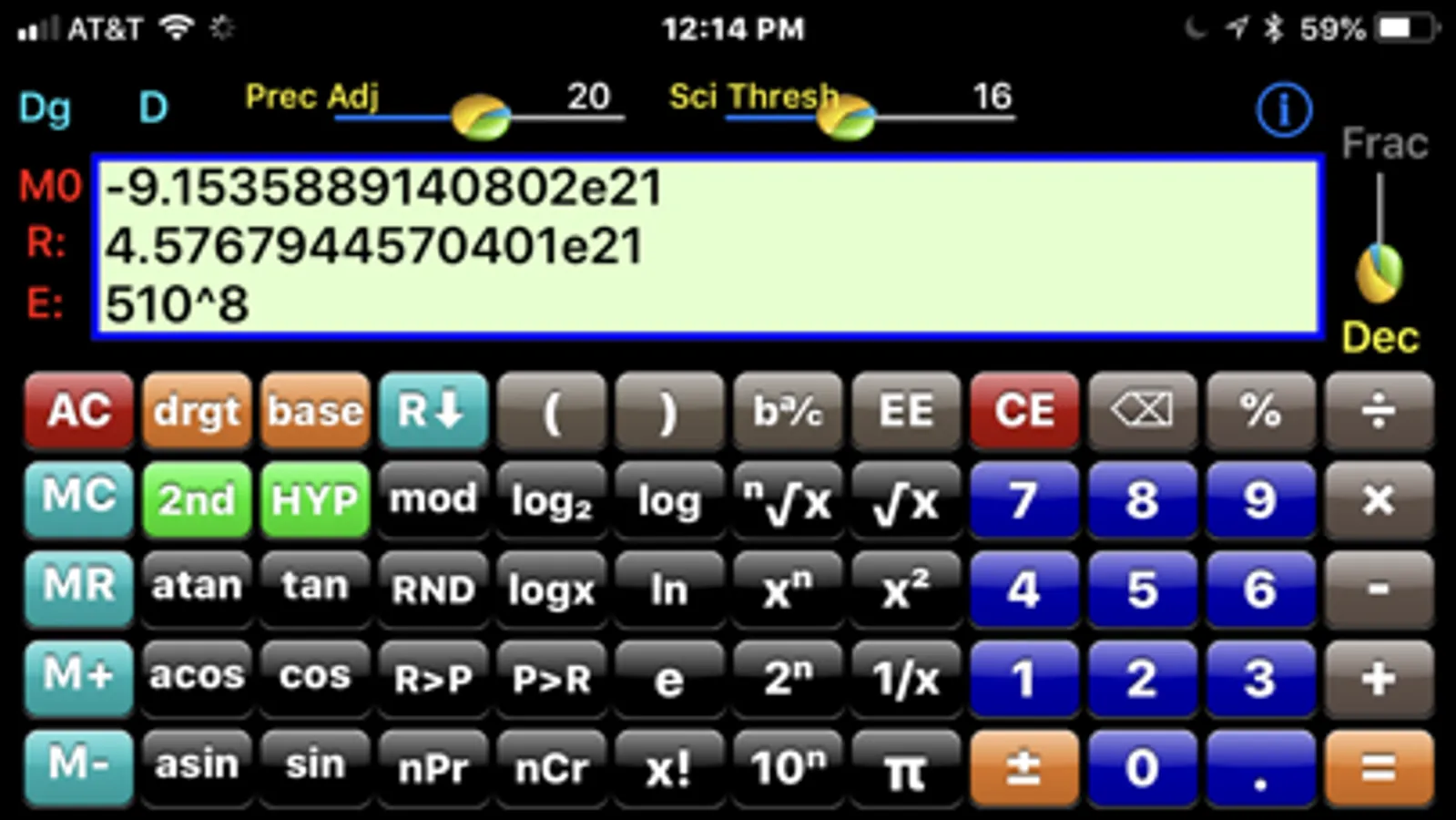 • Sliders to rapidly adjust Display Precision, Decimal-to-Scientific notation switching, and Decimal to Fraction notation switching