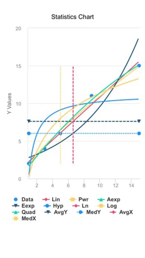 • Fast and simple advanced statistics functions - simply enter a data set and instantly get over 90 statistical calculations including 8 different regressions as well as a graphic plot of the regression lines