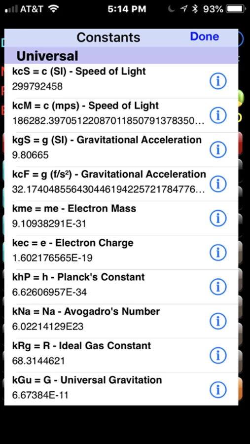 • Keys for e and π plus a table with many additional scientific and mathematical constants that can easily be included in equations