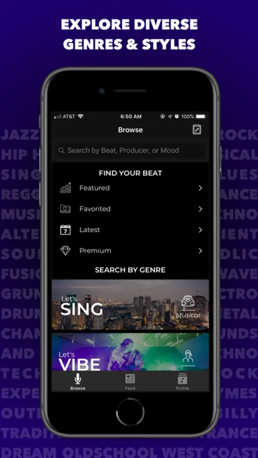 Freestyling isn’t just limited to rappers… our community includes singers, a Capella artists, and even beatboxers! Our mobile app serves as a recording studio that enables artists to practice over instrumentals they discover. With our producers regularly uploading new beats, we provide diverse and fresh new content for our entire community! Once a selection is made, artists can write lyrics down on a notepad and practice recording their tracks until they get it right. Our community is growing every day, so share your creations on our social feed and listen to other talented users!