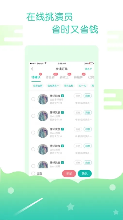 3、实名认证。保证参演人员信息准确有效。