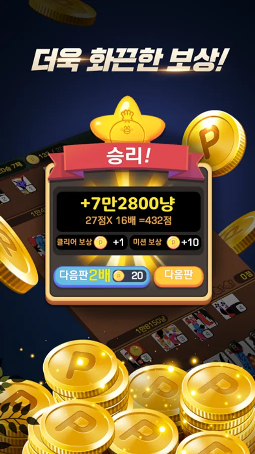 + 무료 고스톱에선 볼 수 없던 화끈한 보상 제공!