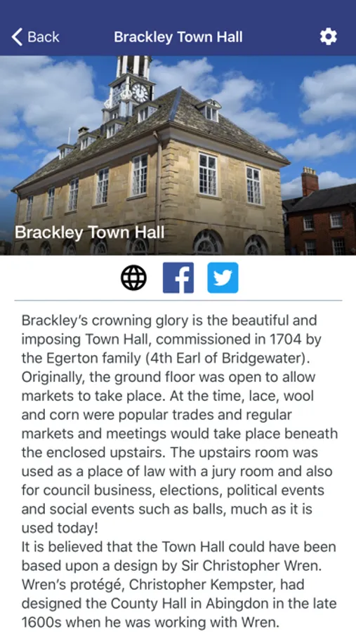 Situated on the edge of the Cotswolds, Brackley is a dynamic market town with a rich and diverse heritage. A Roman Villa, Kings, Saints, wars and a ransacked castle are just the beginning of its story. The Brackley app captures this glorious sense of history – taking users on a heritage trail around the must-see sights of the town, with photos and some special historic videos that help to bring the past back to life.