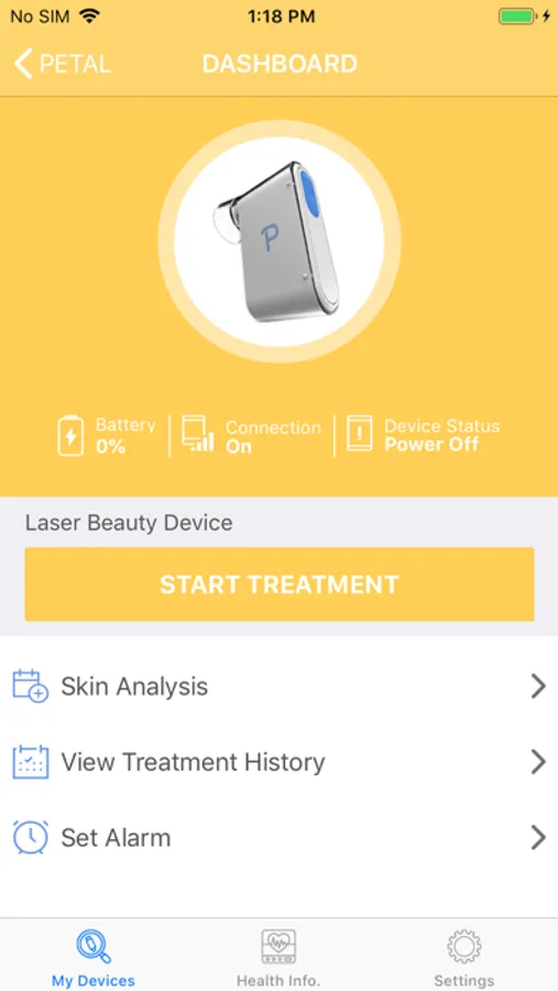 - Remote device control function (treatment start/stop, setting of treatment time)