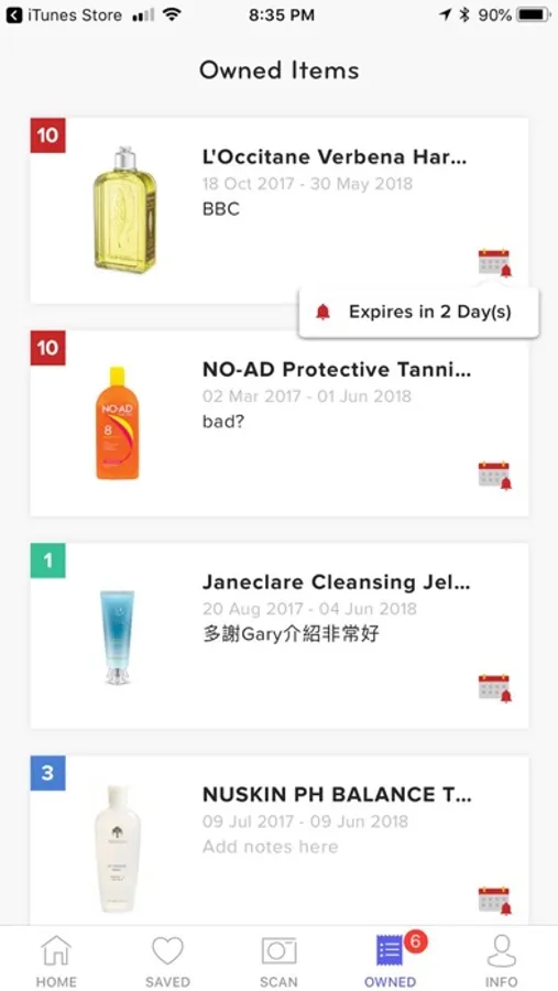 The app also alerts us when it matches an ingredient compound that may trigger our personal health conditions, such as skin or food allergies, etc. Moreover, the app also warns us when it finds a government-banned ingredient as well as alerting us when a product is about to expire soon.
