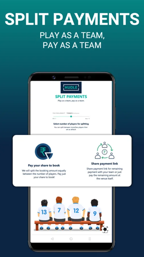 Play as a team, pay as a team! Split the booking amount equally between your teammates & just pay your individual share to book.