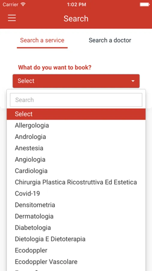 Con l’APP è possibile scegliere dal menù principale la prestazione o, in alternativa, selezionare il medico con cui eseguire la visita specialistica.