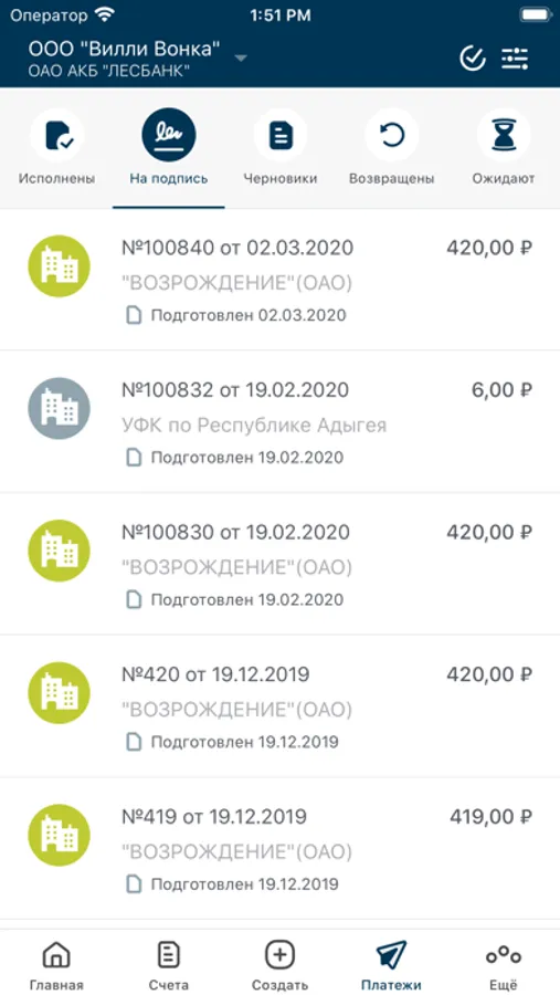 • Контролируйте поступления и списания по всем счетам организаций;