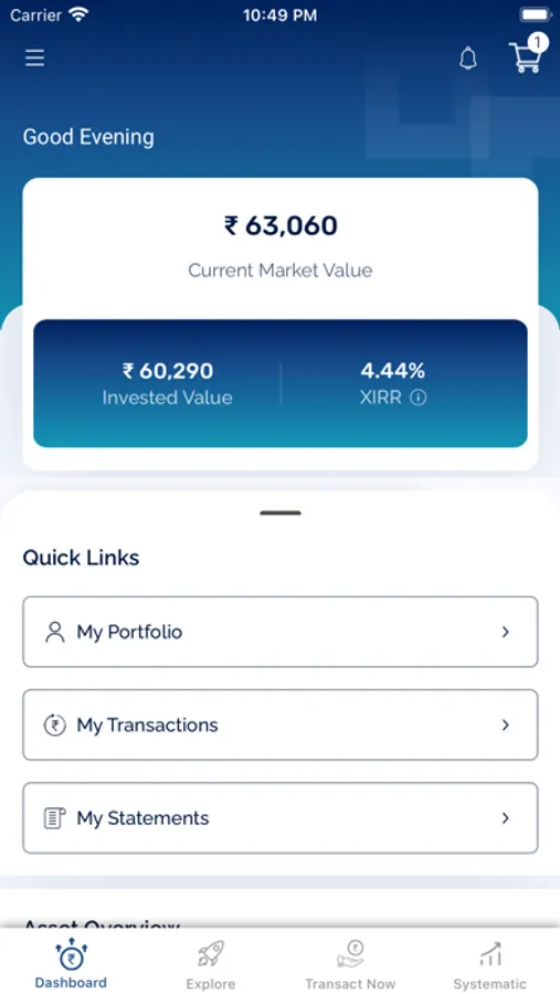 5. E-CART: To make your purchase journey quicker, we have provided an E-Cart option. You can add all your purchases or SIPs to be started in the E-Cart and make a single payment for all at once.