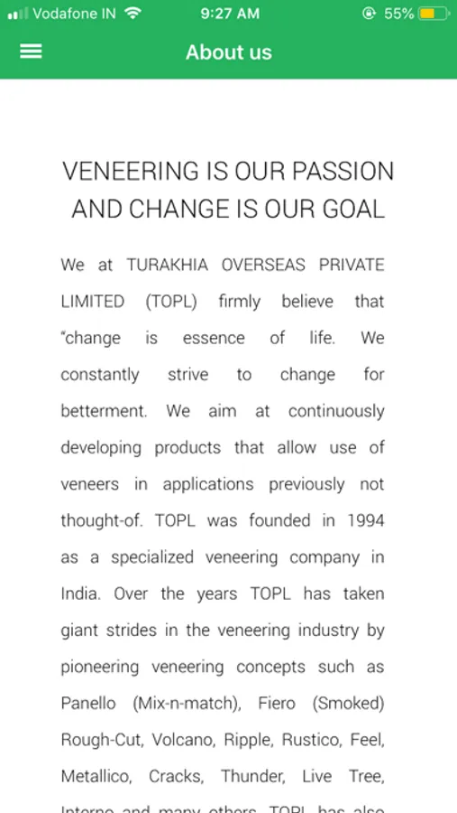 This is wood veneer product display app from Turakhia Natural Veneers for their Dealers, Architects and End consumers. App offers lot of innovative features for wood veneer dealers to showcase and for Architect to explore vast designer, unique, wood veneer range.