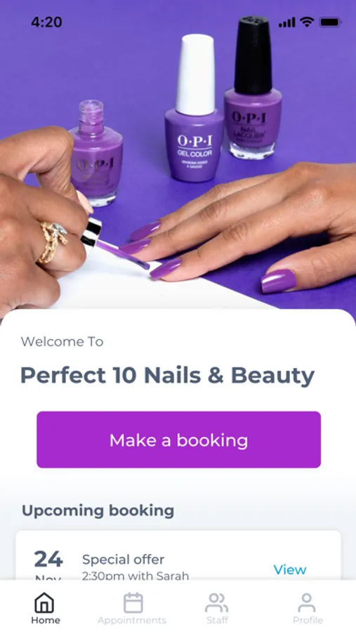 The Perfect 10 Nails & Beauty app makes booking your appointments and managing your loyalty points even easier. You're just a few taps away from feeling good and looking great!