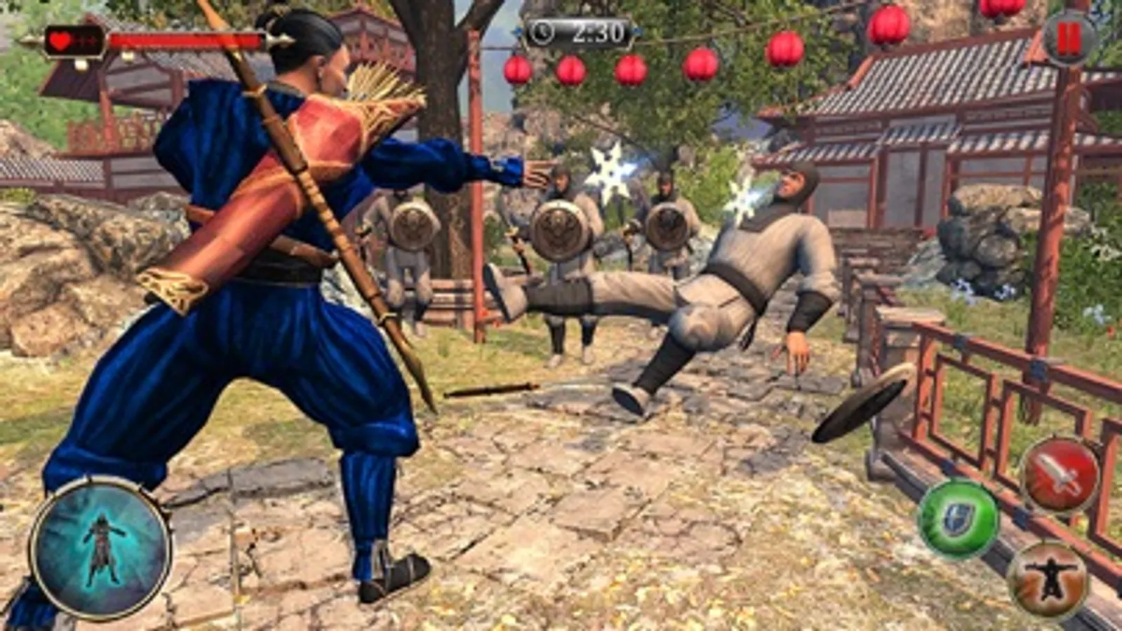 Your ninja hero has through learning of kung fu, martial arts, fighting skills, climbing from your evil sensei.