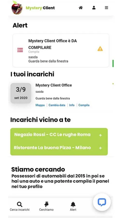 Scegli i Mystery Feedback vicino casa o al lavoro, fai la formazione gratuita e dai la tua opinione sul servizio o sui prodotti che hai visto.