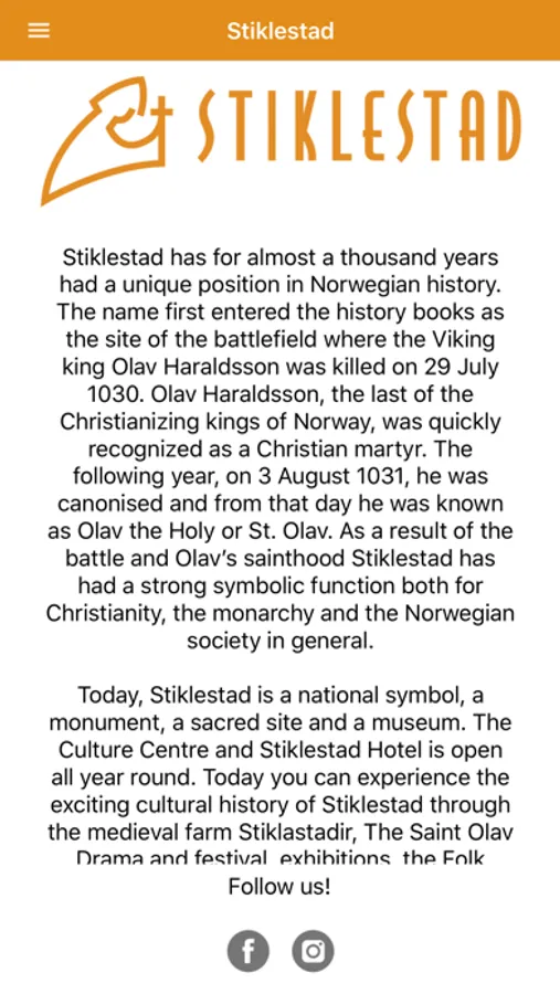 Use the app to explore exciting subjects at Stiklestad. Through the app you will get more information, pictures and movies that will make you get more out of your visit at the center.