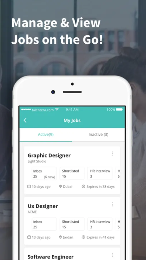 Now we brought your career portal to the palm of your hand! Search and filter through candidates anytime, anywhere! Manage and view your job postings on the go, as well as updating and tracking applications, the ability to manage candidates with folders, and much more features to come!