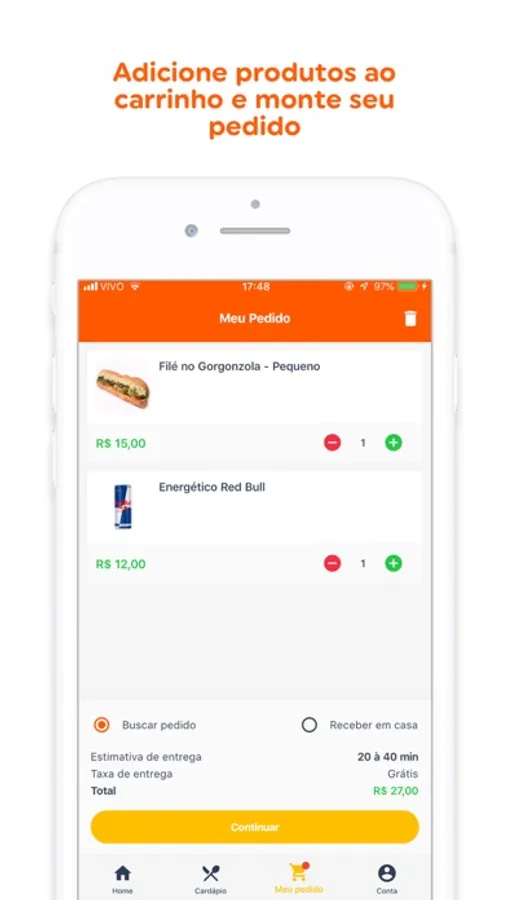 -Receber o pedido diretamente na sua casa ou deixar o pedido feito para retirada no balcão do estabelecimento;