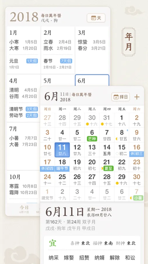 · 每日宜忌:择日功能让嫁娶、搬迁、立约日期一目了然