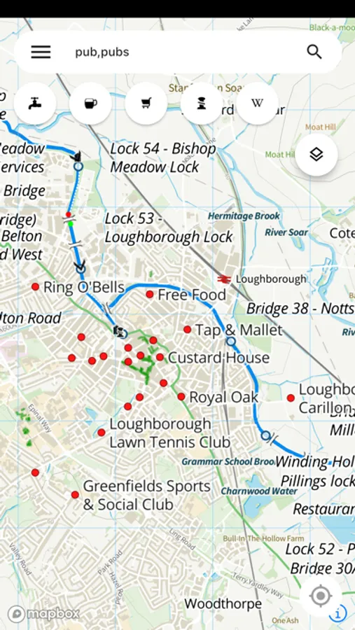 UK canal and river map created using both public data and user contributions. Points of interest are overlaid on maps of the UK's navigable canals and rivers, and include entries for navigation (locks, bridges, junctions, turning points), boater services (water points, toilet pumpouts, etc.), and commercial services especially relevant to continuous or long-term cruising (e.g. laundry services)