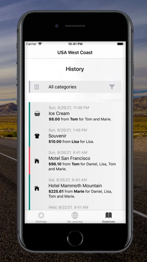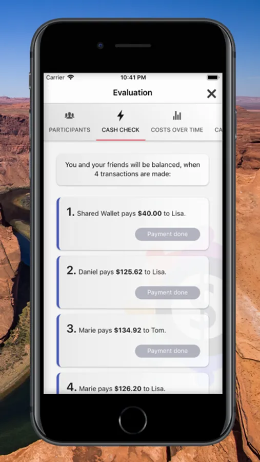 * Simplicity: Pay debts with a single click. Compensation payments are also possible at any time if you do not want to wait until the end of your trip.
