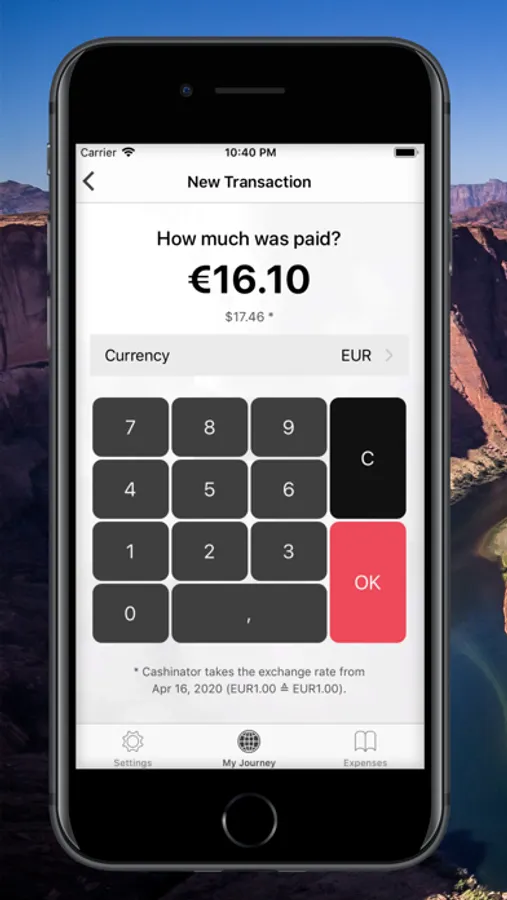 * GPS: Cashinator can save the location to give you insights about how much you payed in each city. Perfect for round trips!