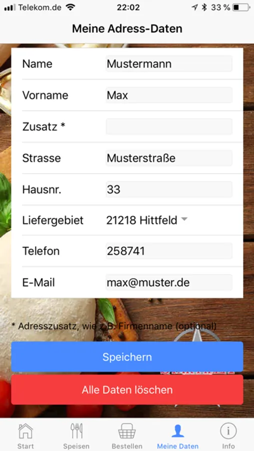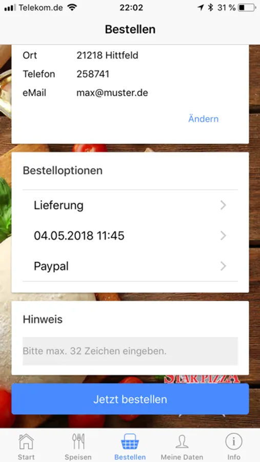 Wählen Sie zu Beginn Ihr Liefergebiet oder ob Sie in der Filiale selbst abholen möchten, dann müssen Sie nur noch die Speisen und eventuell Zutaten auswählen und am Ende Ihre Kontaktdaten und die gewünschte Zahlungsmethode eingeben, damit wir wissen, wohin wir liefern sollen.