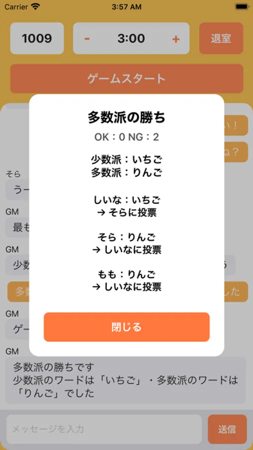 最も投票数が多かった人が少数派だけの場合は、少数派が多数派の単語を予想します