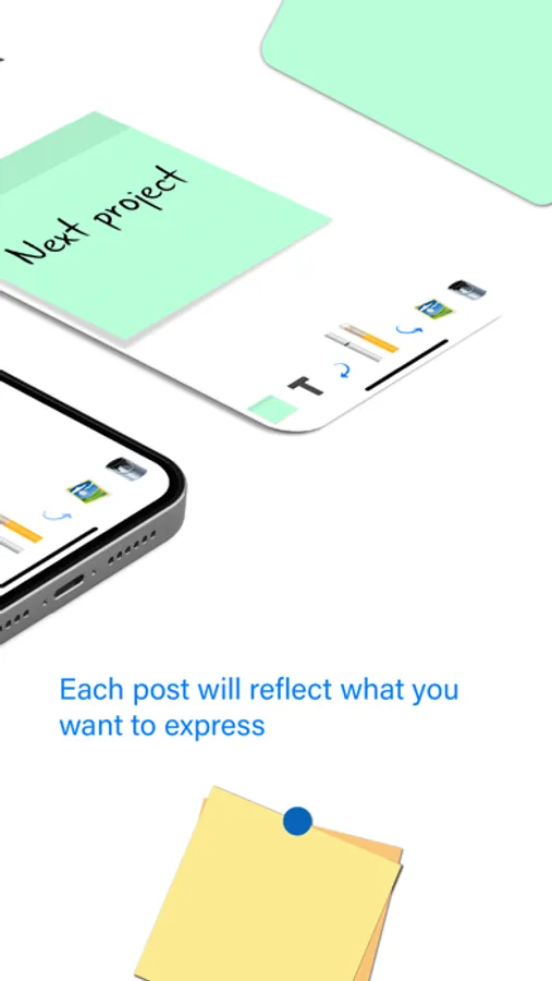 • Draw, type, add photos, change posts colour, and, inks colour to personalise your ideas.