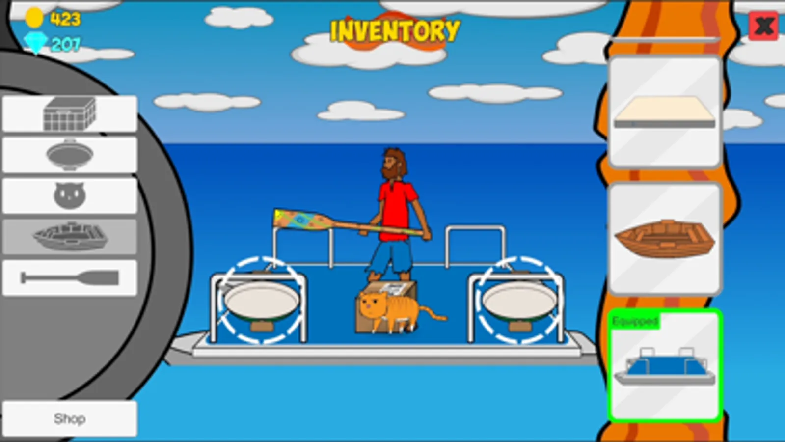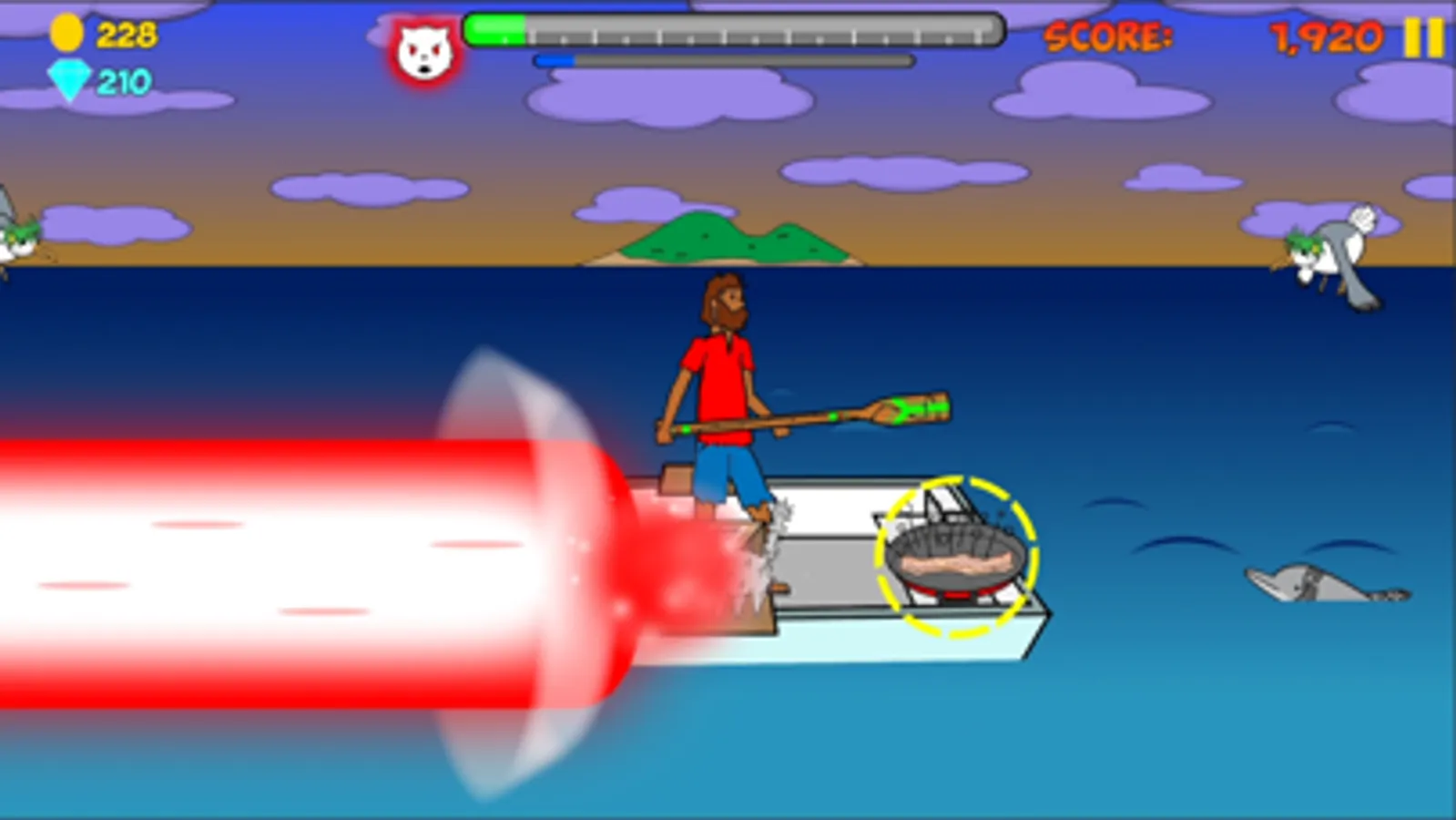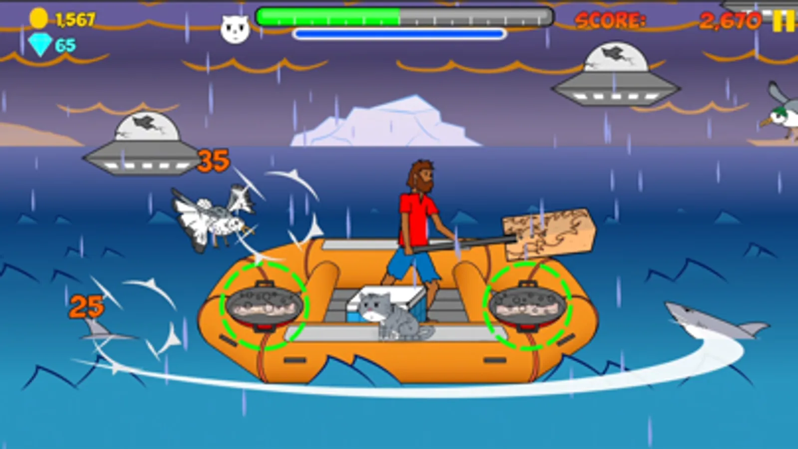 Those dumb sharks won’t know what hit them when you show up with a paintbrush themed oar. Upgrade your weapons, boats, and cats with the gold and diamonds you earn.