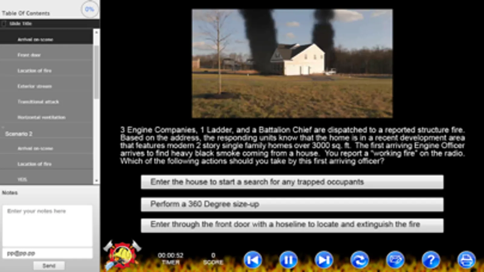 ALIVE (Advanced Learning through Integrated Visual Environments) is an interactive training program that simulates critical decision-making aspects of firefighting and reinforces lessons learned though interactive tactical scenarios. In ALIVE, evidence-based firefighting strategies are divided into a series of steps. At each step, information is presented in the form of text, images, video of a real scenario, audio of a real communication, etc., and firefighters must tackle relevant, real-life situations with the options provided. Each chosen option dynamically alters the scenario and logically routes the participant down a different path with new conditions that require further decision to be made. Once an identifiable, multi-step sub-task has been completed, the user is presented with the result of his or her choice, as well as an explanation of why the choice was correct or incorrect. The application is also designed to allow the user to loop recursively through the scenario to see where errors were made, while providing relevant information necessary for making appropriate decisions at different points and allowing firefighters to learn from their own mistakes.