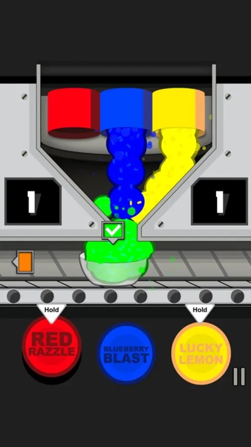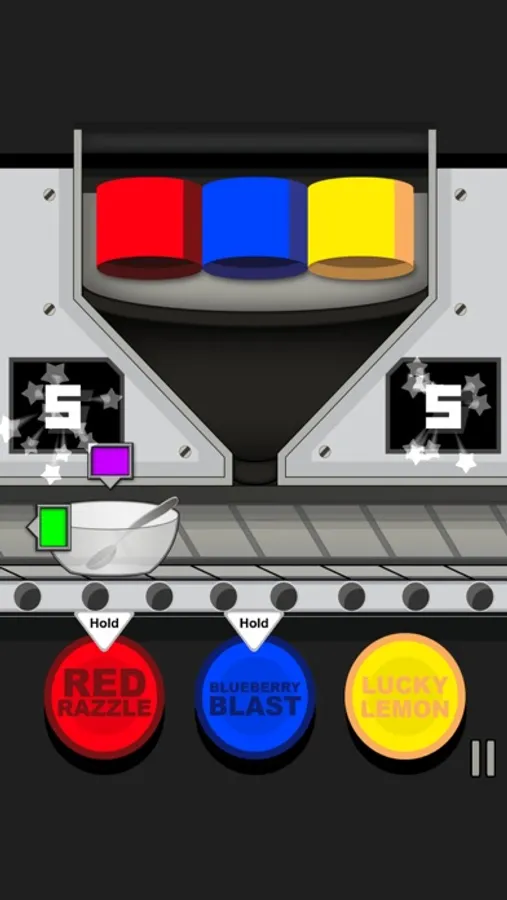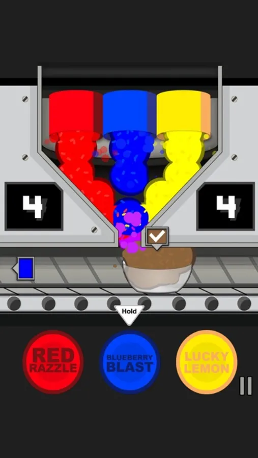 Ice Cream Mixer LITE is a game that involves pouring ice cream into different bowls on a conveyor belt. In this game, you have three buttons which allow you to pour either Red, Blue, or Yellow ice cream. Pushing multiple buttons at the same time will allow you to to mix the ice cream and create new colors, such as Green, Orange, and Purple. The goal of the game is to pour the correcting color into the correct bowl, and gain a point. As you gain more points, the conveyor belt increases in speed, thus increasing the difficulty. Watch out! You only have three strikes before you lose a life and must start over.