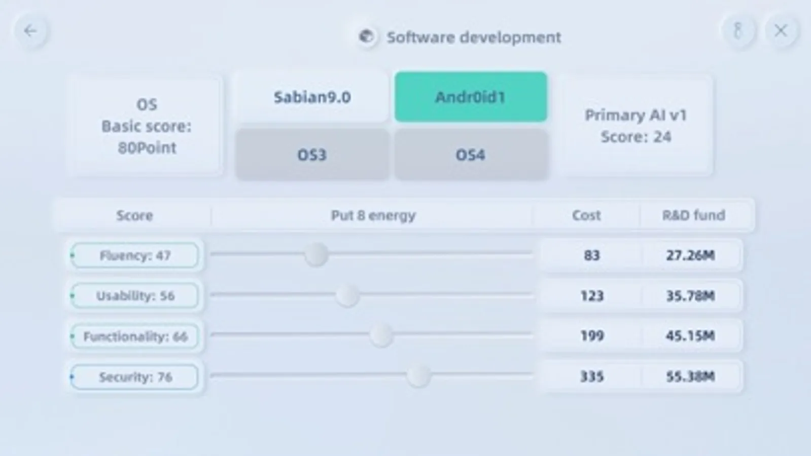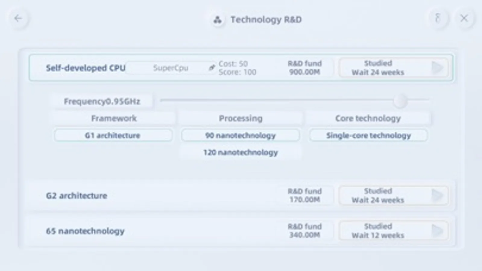 In this game, there are many technologies and accessories are available for upgrade. In addition, with adequate funds, you can even research and develop CPUs with superior performance and experience better operating systems. Customized naming is also supported.