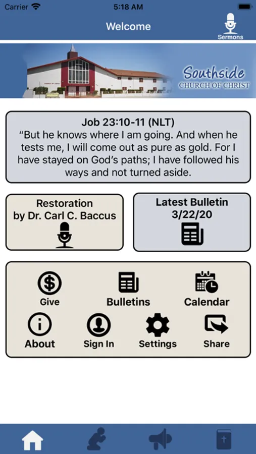 This app provides access to sermon audio, bulletins, announcements, online giving and more!