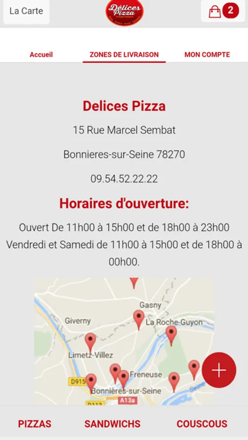 L'application Iphone/Ipad de Delices Pizza Bonnieres vous permet de commander en ligne ou par téléphone via votre application . Vous pouvez consulter notre carte et choisir vos produits .