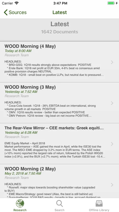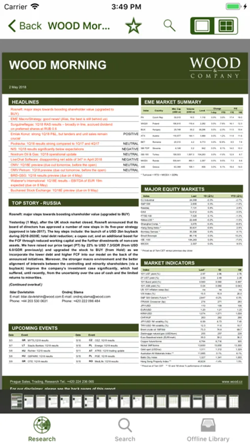 You must be a registered client of WOOD & Co Research with a valid User ID and Password to the research.wood.cz website to access Research Content through this App. If you are a WOOD & Co Research Client but do not have a password please use the "Register" section on the research.wood.cz webpage, enter your registered email address and a new password will be emailed to you.