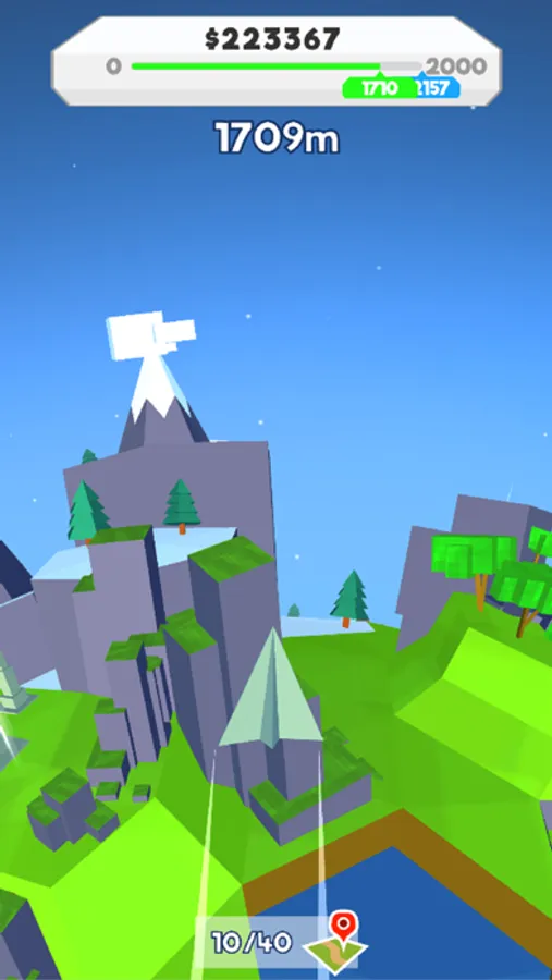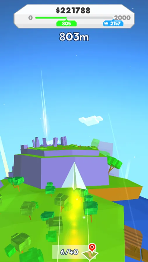 Launch your magic paper plane as far as possible and upgrade your stats! Improve your best distance and discover all the points of interest spread around the map!