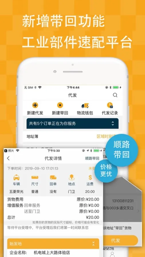 平台配备同城物流专线,快速直达。提供加急和夜送服务。