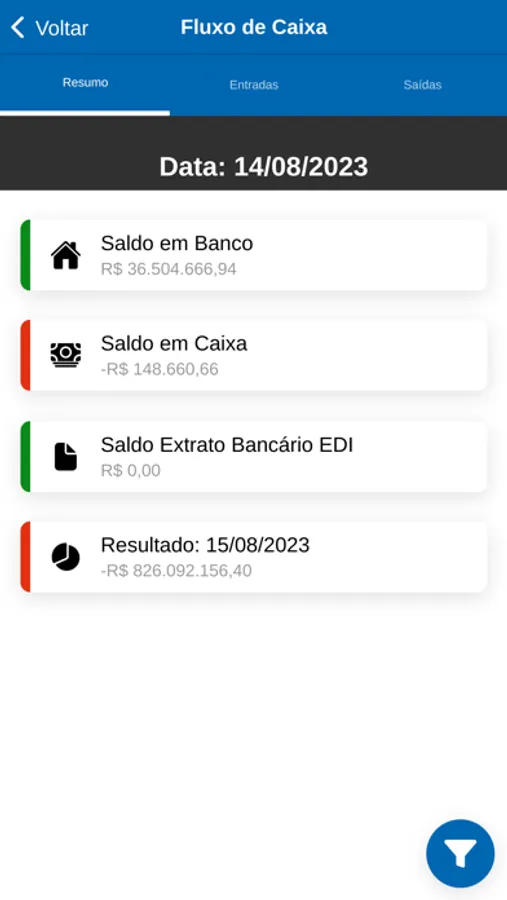 Com ele é possível consultar o fluxo de caixa das suas lojas.