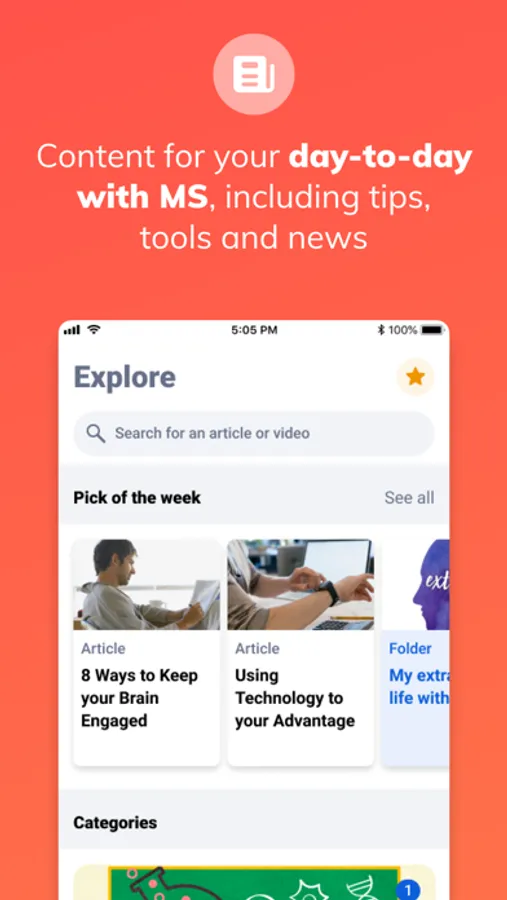 * Tailored content to find tips, inspiration and news related to multiple sclerosis
