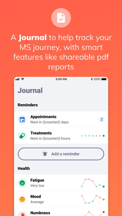 3. A personal journal to keep track of your health, visualize your data and share reports with your healthcare team 4. Wellness programs designed by healthcare professionals tailored to your specific needs