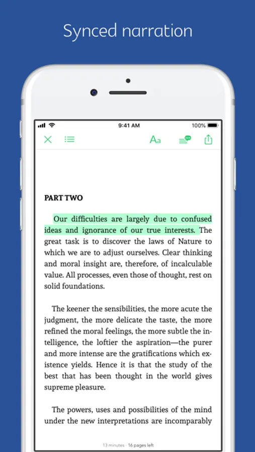 Thanks to sync narration feature, you can change from reading to listening or vice versa easily.