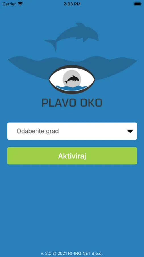 Plavo oko je aplikacija namijenjena sustavnom bilježenju podataka o pojavama morskih organizmima i onecišcenju mora s ciljem povecanja znanja o moru i njegovoj ucinkovitoj zaštiti.