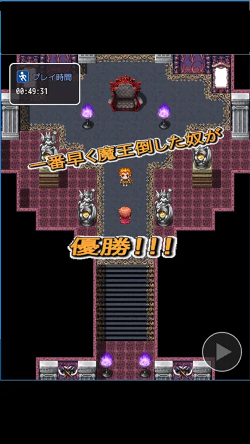 大陸を渡り、船を手に入れ、魔王の元へ向かう。目的は誰よりも早く魔王を倒すこと。