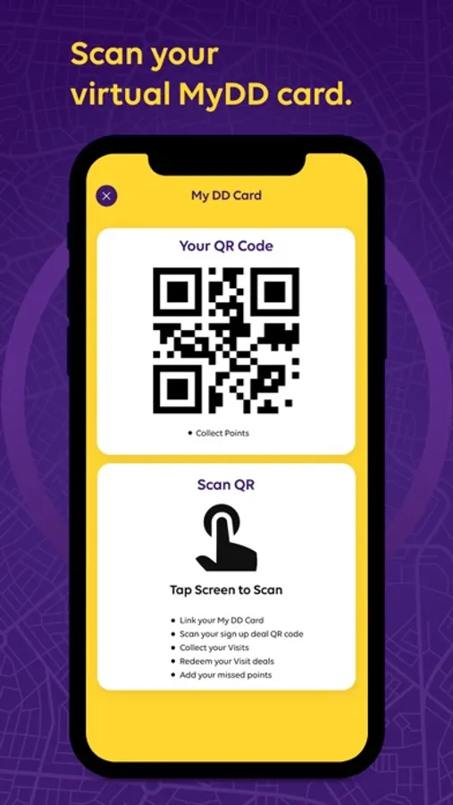 Or open the MyDD Points app, click MyDD card, select “Link your card”, and scan the QR code on the back of your physical card. Your card will now be linked to the app and you can use to claim points and get so much more from the rewards programme