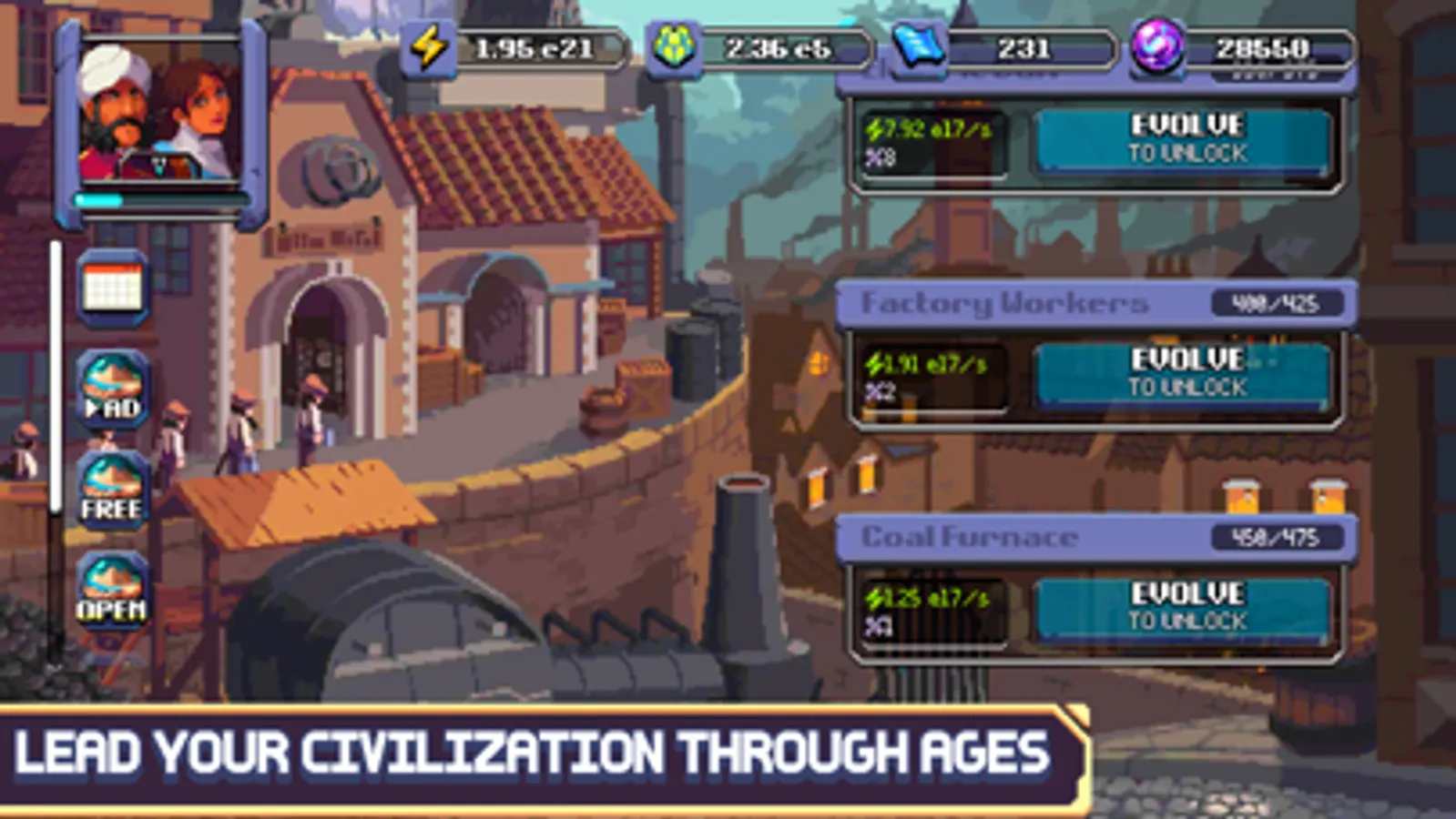 This idle game from the best idle publisher has it all. Civilization, Buildings, Heroes, Time Travel….even a Black Hole Cannon