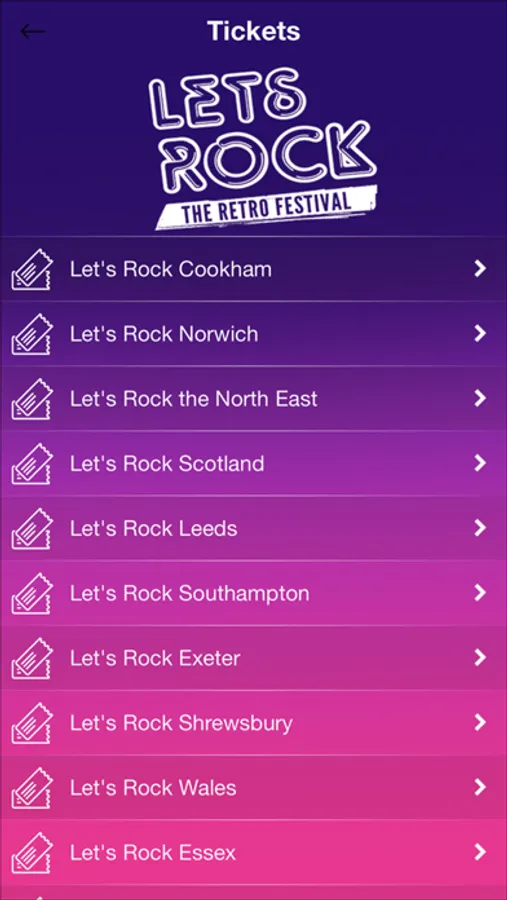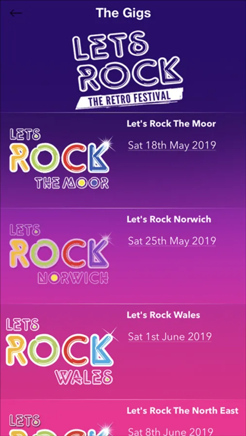 Lets Rock is the biggest retro festival in the UK, performing in 10 major towns and cities throughout the year, this app allows you to get up close and personal with the team, buy tickets, send us your snaps and grab early bird offers for next years gigs, Along with exclusive Audio and video content from backstage at the festivals!